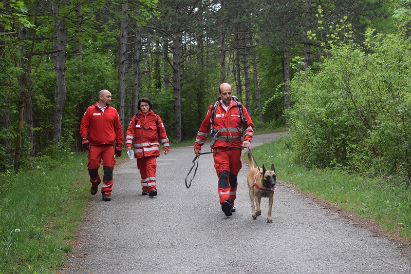 Hundestaffel des Roten Kreuzes mit einem Fahrzeug und 4 Mitgliedern