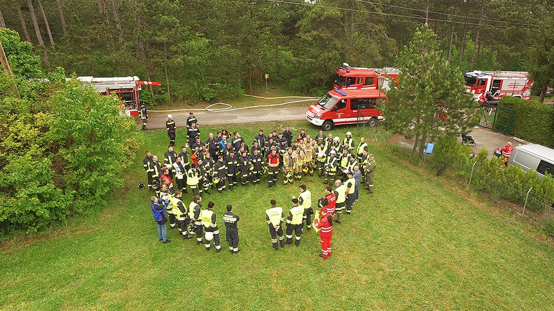 Bei der anschließenden Übungsbesprechung richteten Abschnittsfeuerwehrkommandant Stv. Markus Schüttner und Unterabschnittsfeuerwehrkommandant Raphael Koller ihre Worte an die Kameraden der Feuerwehren, sowie an das Rote Kreuz. Bürgermeister Johann Grund und Feuerwehrkommandant Wolfgang Schagl dankte an dieser Stelle den Freiwilligen für ihr Engagement. Anschließend wartete noch eine kleine Jause zur Stärkung auf alle Beteiligten.