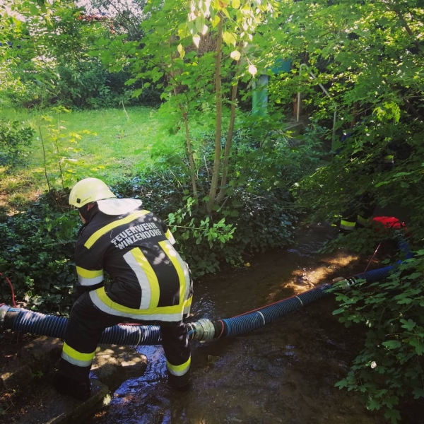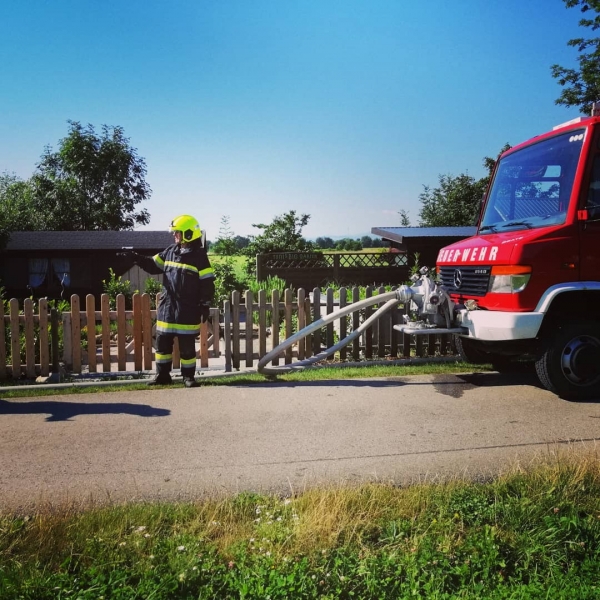 Die Wasserversorgung wurde hierbei mit einer Tragkraftspritze und der Vorbaupumpe sichergestellt.