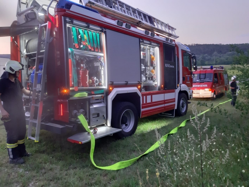 Als zweites Übungszenario galt es einen Flurbrand entlang der Autobahn zu löschen. Dabei wurde mittels der neuen OTTER TS im „Tirolerbacherl“ angesaugt um ausreichend Löschwasser zur Verfügung zu haben.