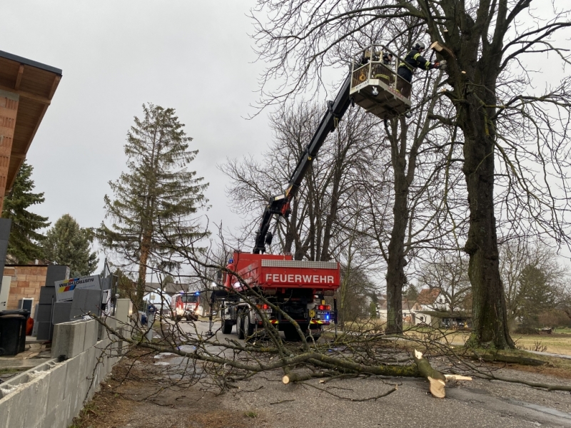 Kurz nach diesem Einsatz wurde ein großer Ast aus einem Baum entfernt. Dieser wurde abgerissen und drohte auf die Straße zu stürzen. Weiters musste ein umgestürzter Zaun entfernt werden. Hierzu mussten mittels Rettungsschere mehrere Stahlstreben entfernt werden um den Betonsteher entfernen zu können.