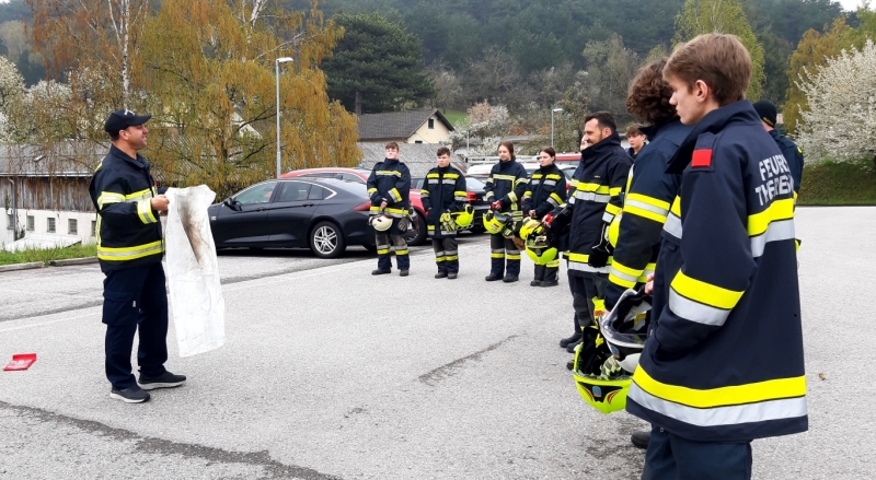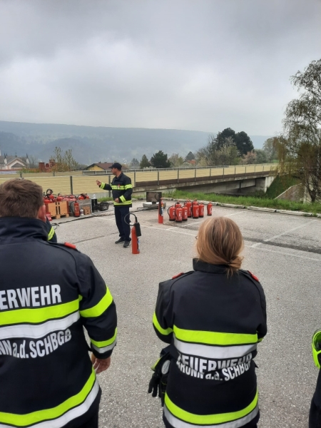 Dabei durften die auszubildenden Feuerwehrmitglieder unter anderem auch den richtigen Umgang mit einem Feuerlöscher in der Praxis erlernen. Mit der freundlichen Unterstützung eines Brandsimulators von der Firma Chubb konnte den TeilnehmerInnen auch Fettexplosionen (ein Ergebnis, wenn man versucht Fettbrände mit Wasser zu löschen) simuliert werden.
