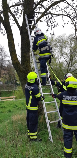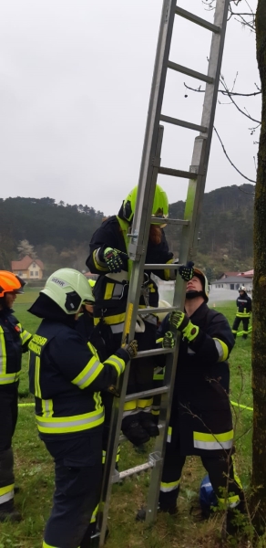 Das richtige Absichern einer Unfallstelle, das Aufstellen einer Beleuchtung und auch das Verhindern von Schadstoffaustritten stand dabei am Programm. Leinen und Knoten beziehungsweise das richtige Umgehen mit Leitern inklusive des Aufziehens einer Löschleitung in den ersten Stock rundeten den Sonntag ab.