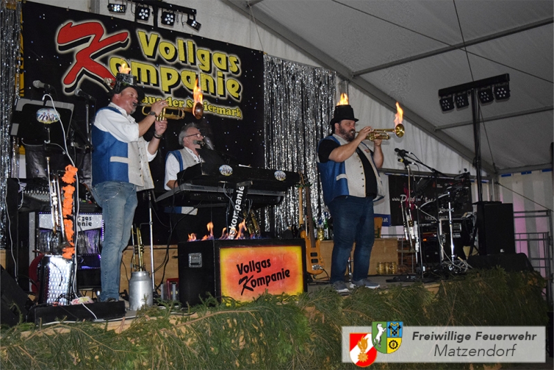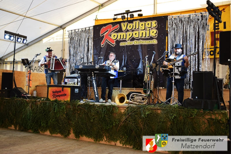 Mit der Band „Vollgas Kompanie“ ging es dann ab 18:00 Uhr richtig rund. Das Festzelt füllte sich mit Gästen. Zu all der guten Laune gehört aber natürlich auch ein Bieranstich, welcher wie üblich von Bürgermeister Johann Grund und Kommandant Martin Schneidhofer durchgeführt wurde. Später am Abend öffnete die Bar ihre Pforten, wo sowohl Indoor, als auch im Freien gemeinsam gefeiert werden konnte.