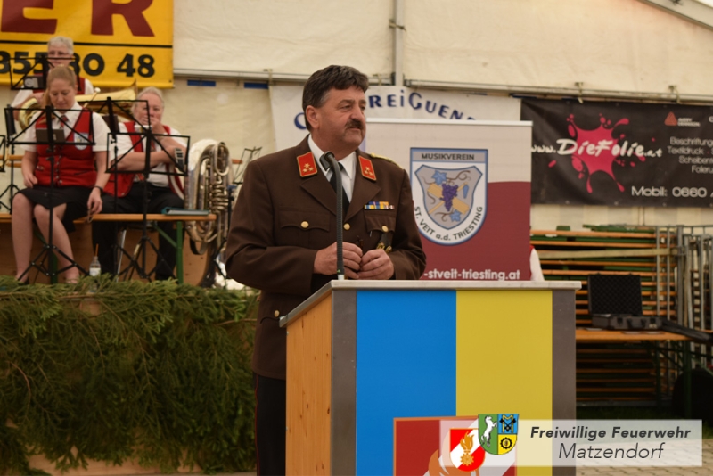 Das anschließende Frühshoppen wurde, ebenso wie die Messe, vom Musikverein St. Veith a.d. Triesting untermalt. Die Feuerwehr bot den Festgästen an allen Festtagen eine Auswahl an Speisen und Getränken, sowie eine Vielzahl an Mehlspeisen und verschiedene Kaffeevarianten. So konnten die Feierlichkeiten etwa gegen 15:00 Uhr einen entsprechenden Ausklang finden.