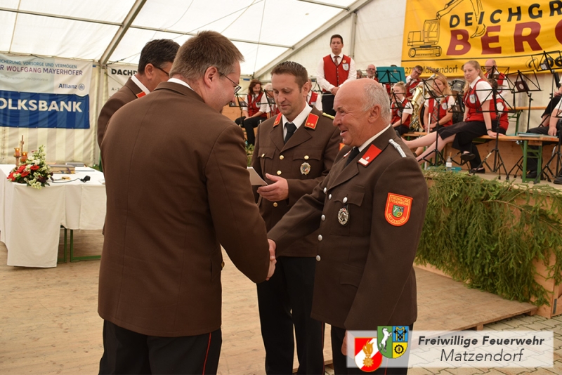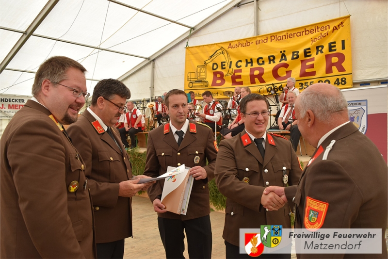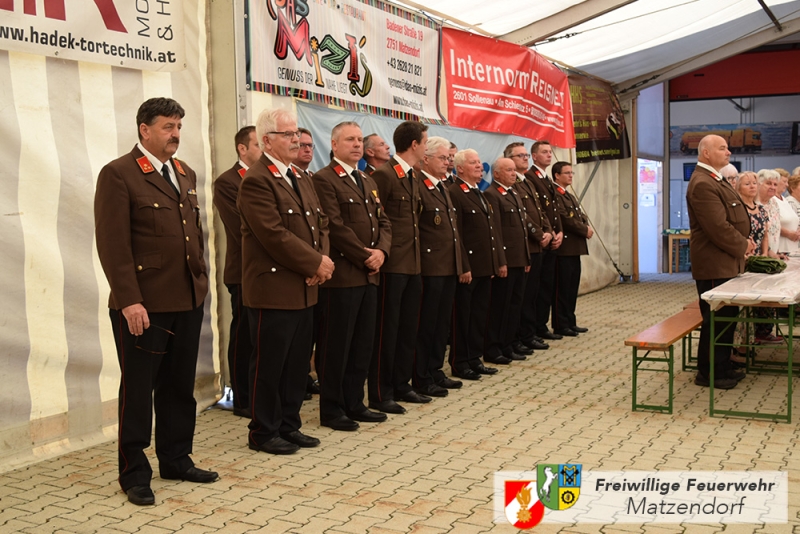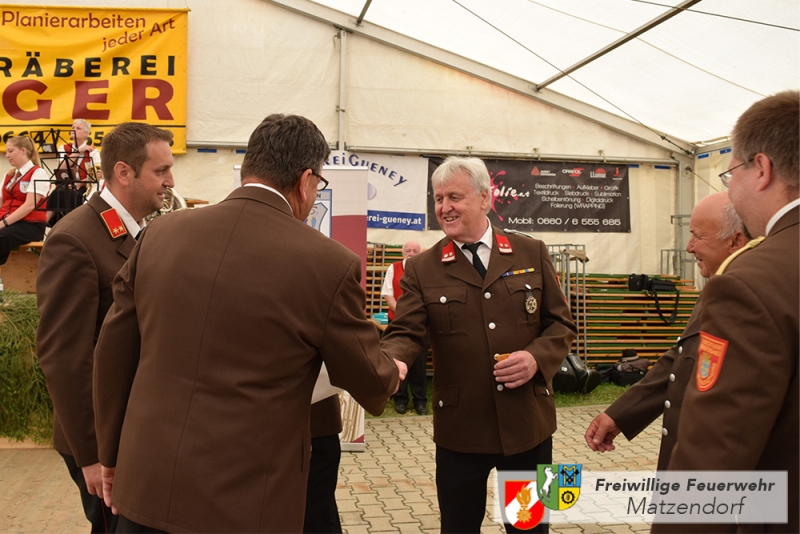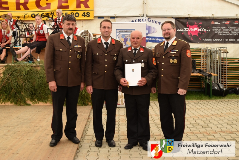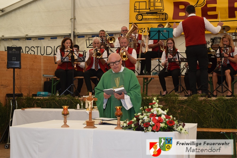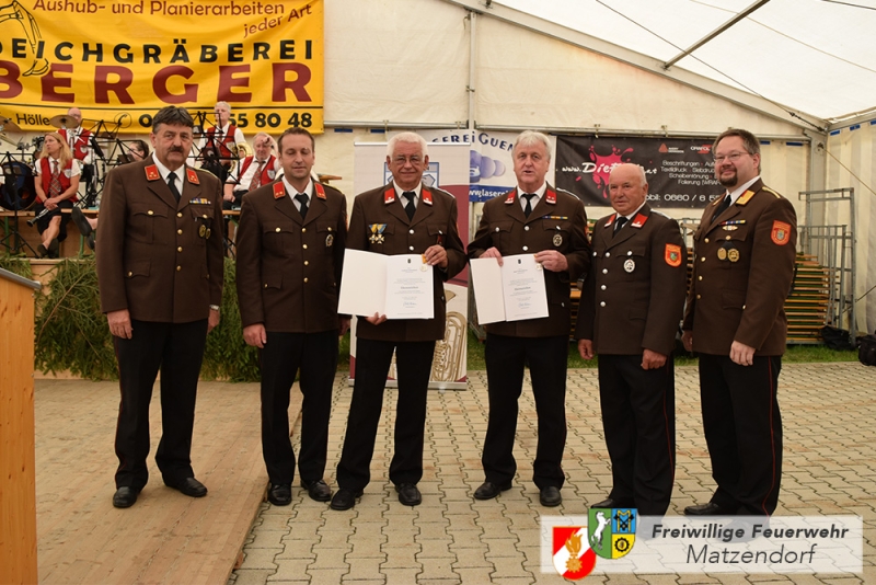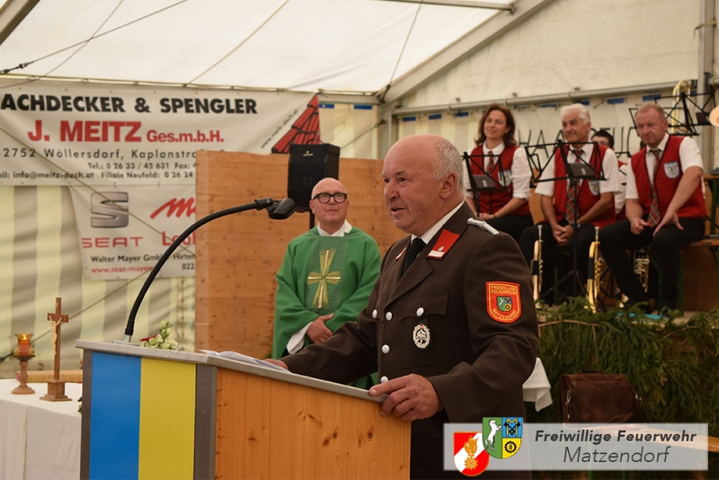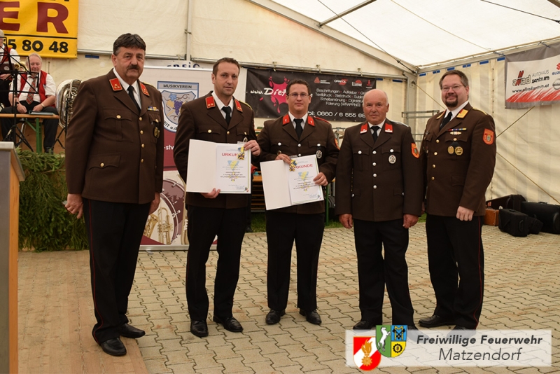Sonntagfrüh besuchten Feuerwehrmitglieder, sowie Festgeste die traditionelle Feldmesse, abgehalten von Pater MMag. Wraclaw Radziejewski. Im Anschluss an die Messe durfte Kommandant Martin Schneidhofer die Ehrengäste begrüßen, darunter Bürgermeister Johann Grund und Abschnittsfeuerwehrkommandantstellvertreter Florian Bartl. Darauf folgten die Ehrungen und Auszeichnungen einiger Kameraden. Kommandantstellvertreter der FF Matzendorf Peter Sahann und Reinhard Resch erhielten das Verdienszeichen 3. Klasse in Bronze des NÖ Landesfeuerwehrverbandes. Die Kameraden Gerhard Schrammel und Josef Schneidhofer erhielten eine Ehrung für 40 Jahre verdienstvolle Tätigkeit. Johann Grund wurde für 50 Jahre verdienstvolle Tätigkeit im Feuerwehr und Rettungswesen geehrt.