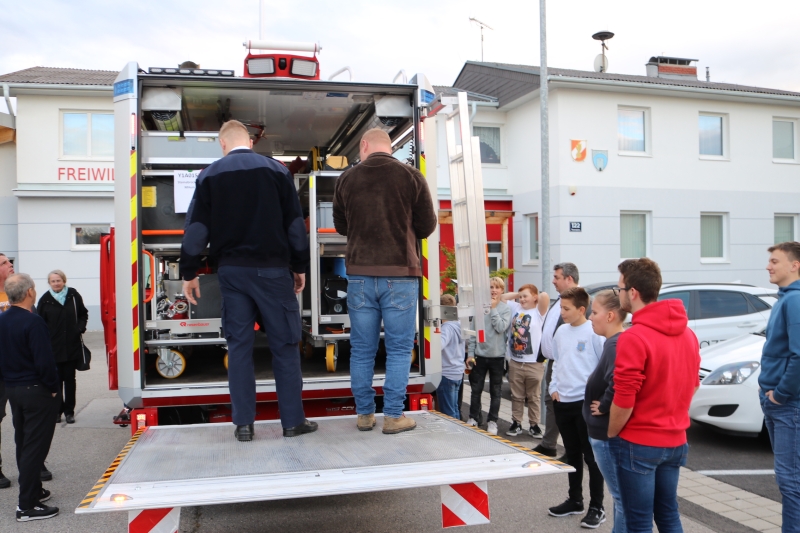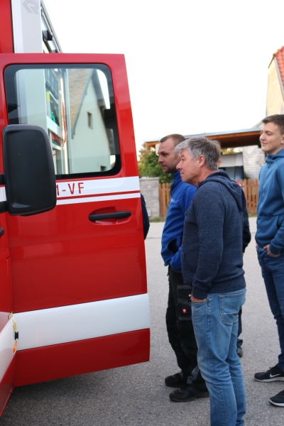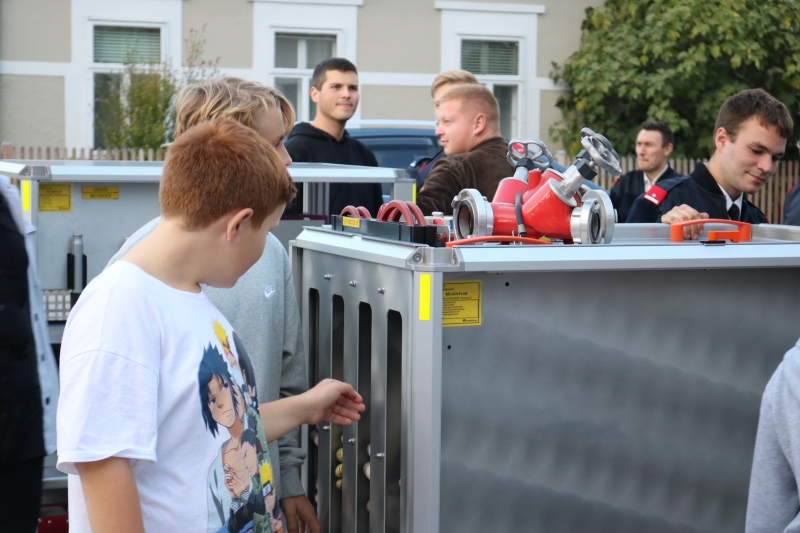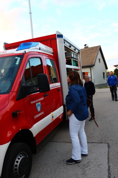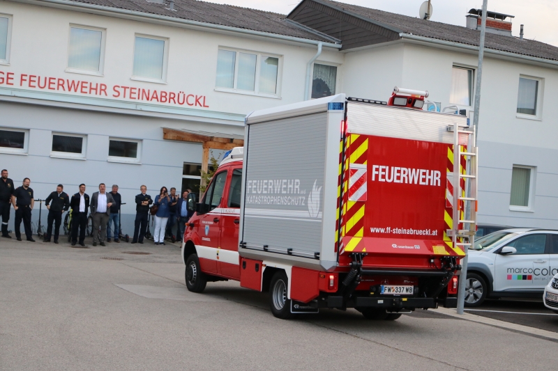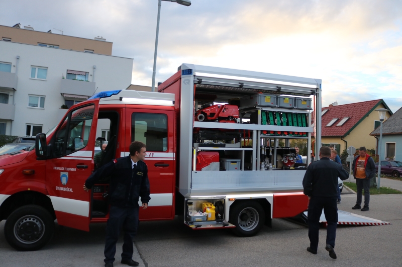 Zahlreiche Gäste, darunter Bürgermeister Ing. Gustav Glöckler, interessierte Gemeinderäte, die Fahrzeugpatin, die Feuerwehrjugend und natürlich die Mannschaft der Freiw. Feuerwehr Steinabrückl waren gekommen um am Abend das neue Fahrzeug im Feuerwehrhaus in Empfang zu nehmen und zu betrachten.
