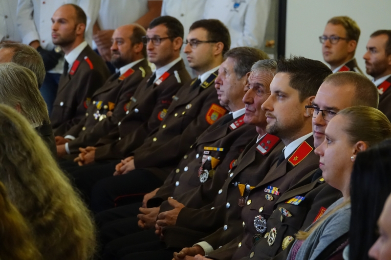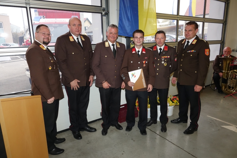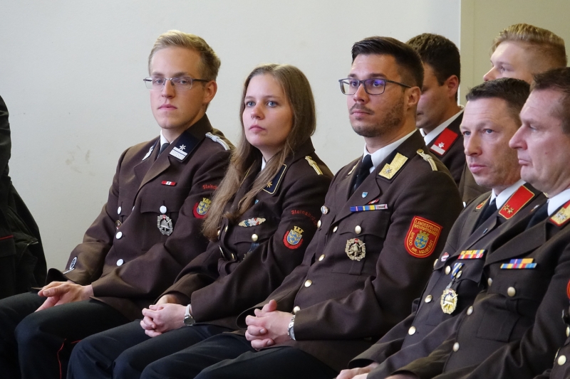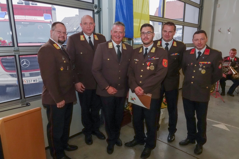 Dem Kommandant-Stellvertreter VI Matthias Ressl, BSB Arnel Mrkaljevic und LM Rene Gundelmayer zeichnete er mit der Verdienstmedaille in Bronze des NÖ Landesfeuerwehrverbandes aus.