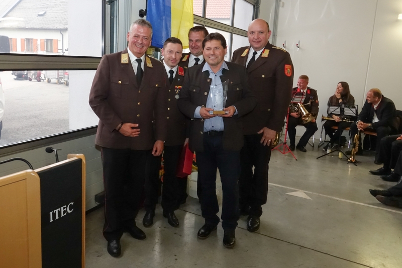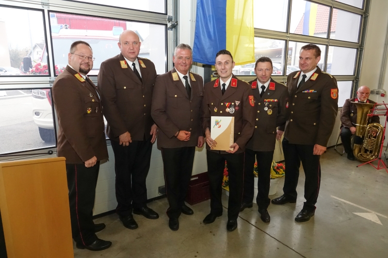 Für besondere Verdienste um die Feuerwehr konnte er Marco Colazzo und Rudolf Schwarz mit der höchsten Auszeichnung für Privatpersonen, der Florianiplakette des NÖ Landesfeuerwehrverbandes auszeichnen.