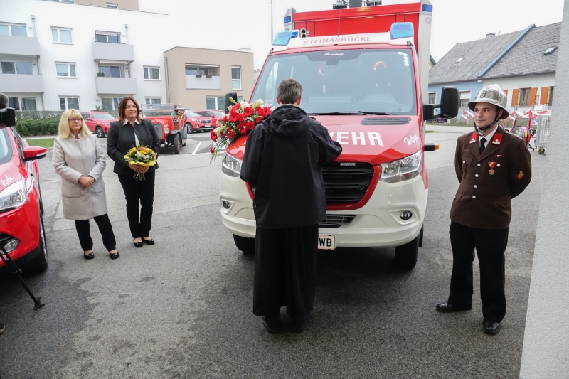 Kaplan Dr. Andreas Rager segnete nach den Festreden die beiden Fahrzeuge. Mit der NÖ Landeshymne endete der Festakt. Im Anschluss bestand die Möglichkeit beide Fahrzeuge im Detail zu besichtigen und sich beim Buffet, zubereitet vom Männerkochverein Wöllersdorf-Steinabrückl sich zu stärken.