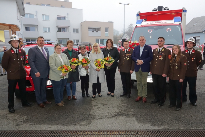 Unter Ihnen: In Vertretung für die Landeshauptfrau Johanna Mikl-Leitner, den Abgeordneten zum NÖ Landtag DI Franz Dinhobl,den Landesfeuerwehrkommandanten LBD Dietmar Fahrafellner,Kaplan Dr. Andreas Rager der auch die Segnung der beiden Fahrzeuge durchführte,die Stellvertreterin des Bezirkshauptmannes Frau Mag. Manuela Herzog, den Herrn Bürgermeister Ing. Gustav Glöckler,LFR Josef Huber,für das Bezirksfeuerwehrkommando OBR Karl-Heinz Greiner und BR Norbert Schmidtberger, für das Abschnittsfeuerwehrkommando BR Markus Schüttner und ABI Florian Bartl,BR Christian Pfeiffer und VI Harald Sander vom AFKDO Wr.Neustadt-Stad, für das Roten Kreuz Bezirksstellenkommandant Andreas Steffny, Vizebürgermeister Hubert Mohl, alle anwesenden Damen und Herren des Gemeinderates, von der Polizeiinspektion Wöllersdorf, Bezirksinspektor Michaela Schrammel und Gruppeninspektor Wolfgang Wrba, Thomas Pata, Ortsstellenleiter des Roten Kreuz in Markt Piesting, Stellvertretend für alle benachbarten Feuerwehren die beiden Chef des Stabes FT Manfred Foltin und EOBI Robert Wahl aus dem Bezirksführungsstab, den Kommandanten der Flugdienst Basisgruppe Süd BI Sigi Spitzer und, den Kommandanten der Feuerwehr St.Pölten - Pummersdorf HBI Anton Stiefsohn, die anwesenden Patinen der Einsatzfahrzeuge Erika Kaindl, Marianne Straub, Barbara Haas, Uschi Schwarz und Helga Colazzo, die Vertreter der Presse, das Musikquartett, die Ortsbevölkerung, und die Mitglieder der Freiwilligen Feuerwehr Steinabrückl.
