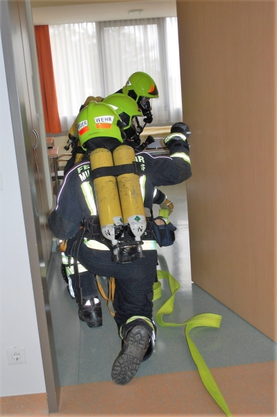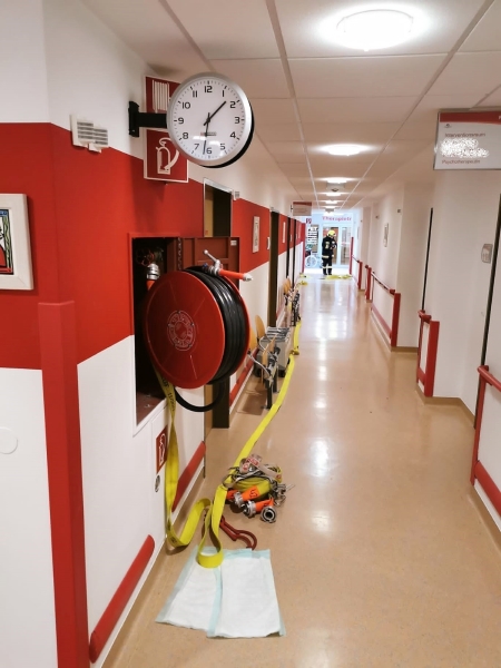 * Löschen eines Zimmerbrands im 1. Obergeschoss des Patiententrakts