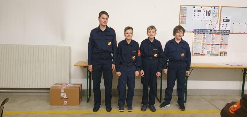 Verleihung: Jugendfeuerwehrmann Mario Stoiber, Jakob Widlhofer & Felix Wiedhofer haben das Fertigkeitsabzeichen „Sicher zu Wasser & am Land“ Spiel erhalten.