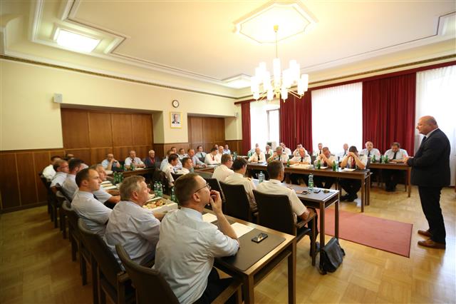 „Es ist toll, was Wiener Neustadt hier auf die Beine gestellt hat. Die Festlichkeit und auch der würdige Rahmen des Hauptrapports haben uns als Gäste sehr beeindruckt. Die tolle Ausrückzeit der Feuerwehr konnten wir bei einigen Einsätzen live miterleben. Die Stadt kann auf ihre Männer der Feuerwehr Wiener Neustadt stolz sein“, würdigte Armin Bindel von der Feuerwehr Waiblingen Neustadt, der Vorsitzende des Arbeitskreises Feuerwehren Neustadt in Europa, während seiner Rede im großen Sitzungssaal im alten Rathaus, welcher freundlicherweise für die Arbeitskreissitzung der Feuerwehren der Neustädte in Europa zur Verfügung gestellt wurde. Erster Vizebürgermeister Dr. Christian Stocker führte in seiner dortigen Ansprache auch die Gäste in die Geschichte der Stadt Wiener Neustadt ein.