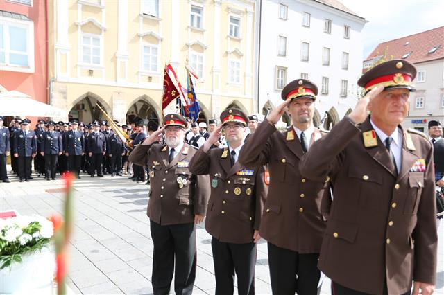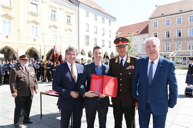 Viele Kameraden wurden geehrt und man ließ es sich nicht nehmen für Verdienste um die Internationale Kooperation auch Gäste aus den Neustädten Europas zu Ehren. Auch aus der Wirtschaft durfte eine hohe Auszeichnung vergeben werden: Dr. Philipp Jaklin von der Firma Jamal wurde die Florianiplakette des NÖ Landesfeuerwehrverbandes Clubobmann und Bürgermeister Klaus Schneeberger überreicht wurde. Dieser wurde ebenfalls geehrt und mit der höchsten Auszeichnung überrascht, die das Feuerwehrwesen einem „Zivilisten“ übergeben kann, geehrt. Bezirksfeuerwehrkommandant-Stv. und Wr. Neustädter Feuerwehrkommandant Josef Bugnar überreichte Bürgermeister Schneeberger die Florianiplakette des Österreichischen Bundesfeuerwehrverbandes, der Dachorganisation aller Feuerwehren Österreichs.