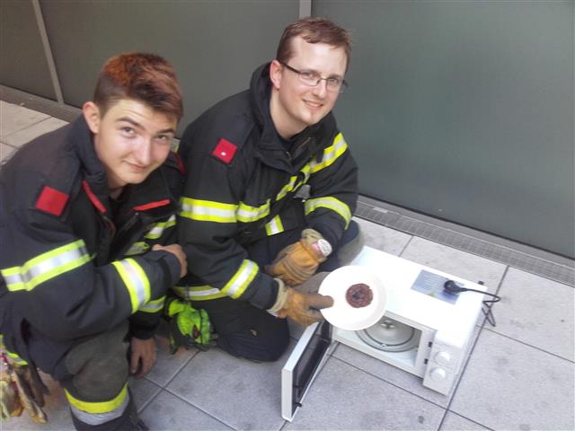 Ein automatischer Brandmelder meldete der Bezirksalarmzentrale einen Brand. Die Feuerwehr Wiener Neustadt rückte vom Fest am Samstag, 1. Juli, mit einem Tanklöschfahrzeug aus und fand vor Ort eine stark rauchende Mikrowelle vor. Darin befand sich ein Keks, der durch die Mikrowelle verbrannte. Das Gerät wurde abgeschaltet und ins Freie gebracht. (Foto: 20170701_neustadttreffen_13)