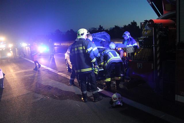 Beim Eintreffen der Feuerwehr waren die beiden Verletzten bereits von Rettung und Notarzt abtransportiert worden. Die Feuerwehr sicherte die Unfallstelle in der Dämmerung ab und begann mit der Fahrzeugbergung. Während der tschechische Pkw die Fahrt selbstständig fortsetzen konnte, musste der aus Baden stammende von der Autobahn geschleppt werden.