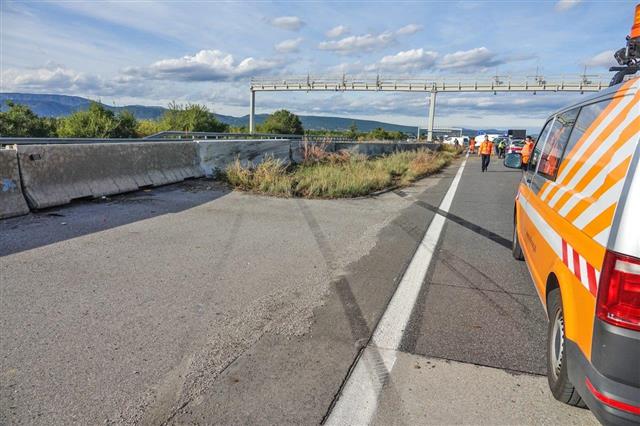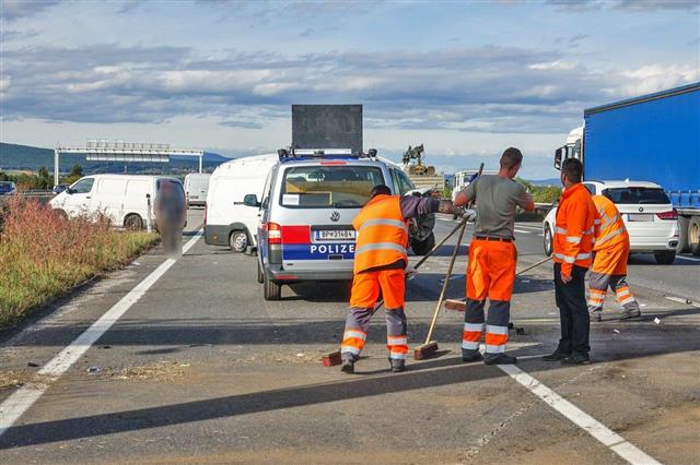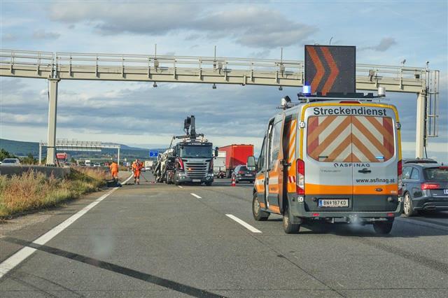 Schließlich konnte der Einsatzort kurz vor der Abfahrt Wiener Neustadt West ausgemacht werden. Glücklicherweise konnte nach der ersten Lagemeldung für die weiteren anfahrenden Kräfte Entwarnung gegeben werden. Entgegen der Notrufmeldungen befanden sich glücklicherweise keine eingeklemmten Personen mehr im Fahrzeug, bzw wurden die Verletzten bereits vom Rettungsdienst versorgt. Aus noch unbekannter Ursache kam ein mit drei Personen besetzter Klein Lkw ins schleudern und prallte gegen die Betonmittelleitwand, ehe der Wagen auf der Überholspur zum Stillstand kam. Durch die Wucht des Aufpralls wurden die Betonelemente verschoben, sodass seitens der ASFINAG komplette Reparaturarbeiten durchgeführt werden müssen. Alle drei Insassen wurden nach der medizinischen Erstversorgung vom Rettungsdienst ins Landesklinikum Wiener Neustadt gebracht, wobei eine Person schwere Verletzungen davontrug. Nach der Absicherung durch die ASINAG und der polizeilichen Freigabe wurde das schwer beschädigte Unfallfahrzeug von einem privaten Abschleppdienst geborgen und verbracht. In weiterer Folge wurde durch die ASFINAG die Unfallstelle gesäubert. Während der Bergungsarbeiten kam es zu einem zwei Kilometerlangen Rückstau, welcher sich nach Freigabe der Unfallstelle rasch auflöste.