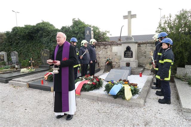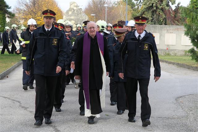 In einer andächtigen Rede erklärte Pater Walter Ludwig, welche Bürde der ehrenamtliche Feuerwehrdienst darstellt und wie gefährlich der Einsatz für die Allgemeinheit sein kann. Nicht nur, weil sich heuer der tragische Tod im Einsatz von Thomas Ungersböck zum 20. Mal jährt, auch weil aktuell ein Kamerad aus Südtirol im Rahmen der Unwettereinsätze von einenm Baum tödlich getroffen wurde, erinnert Pater Walter, dass aufrichtiger Mut zum Feuerwehrdienst gehört.