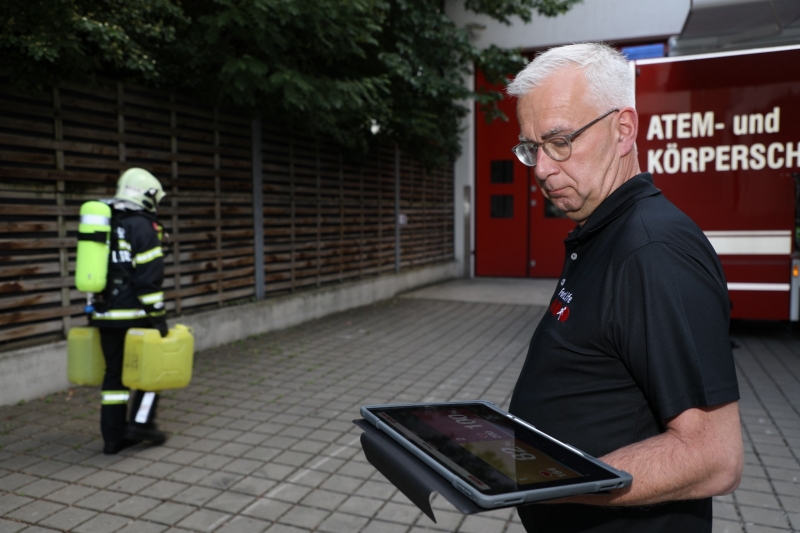 Uwe Nöcker und Michael Gissinger vom deutschen Marktführer für Individualtrainingsplanung für Feuerwehren und Rettungsdienste ForLife unterstützten die Sachgebiete Atemschutz, unter BSB Peter Lenauer, und Feuerwehrmedizinischer Dienst, unter SB Georg Dolenetz, bei der Durchführung des sogenannten Finnentests. Die beiden Spezialisten überwachten diesen Test nicht nur mit Pulsmessern, sondern haben auch Laktatmessungen durchgeführt. Außerdem warteten die Fitnessprofis mit einem speziellen Messverfahren auf: ForLife Kinetics.