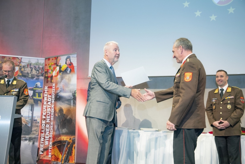 Mein größter Dank gilt aber all jenen Frauen und Männern, die seit 1862 bis zum heutigen Tage das Existieren der Feuerwehr Wiener Neustadt durch den Lauf der Geschichte stets gewährleistet haben, selbstlos, uneigenützig, und mit größtem Idealismus, er gilt den Feuerwehrleuten der Feuerwehr der Stadt Wiener Neustadt!