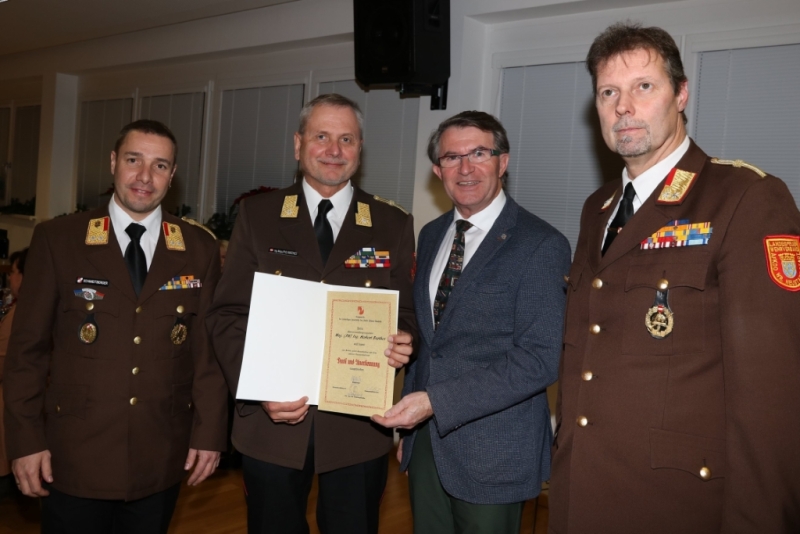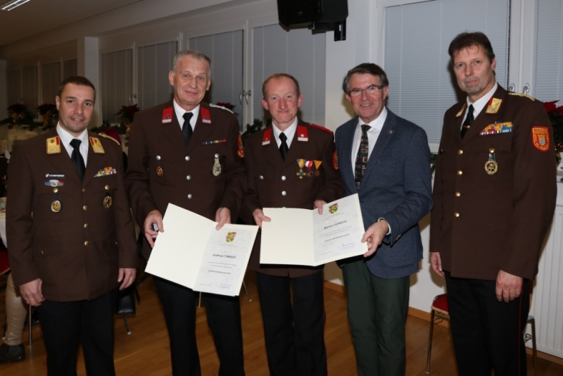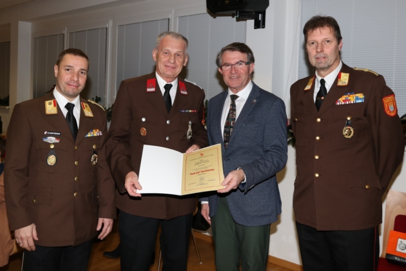 Eine Urkunde mit "Dank und Anerkennung", anlässlich ihres Ausscheidens aus dem Aktivstand, erhielten EHLM Gottfried Tomisek und EVI Herbert Barthes.