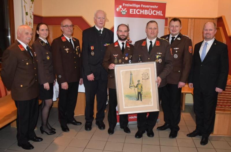 Obmann Ulreich überbrachte ein altes Bild von Martin Zehetner, als er 1926 als Fahnenträger beim Kameradschaftsbund tätig war. Martin Zehetner war von 1938 – 1959 auch Hauptmann (jetzt Kommandant) der FF Eichbüchl. Das Bild wird einen Ehrenplatz im Feuerwehrhaus bekommen.
