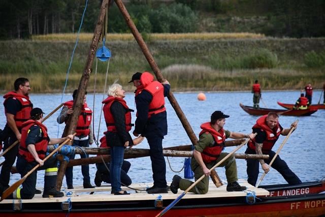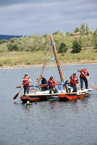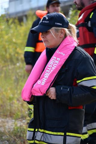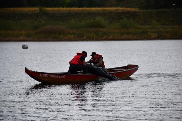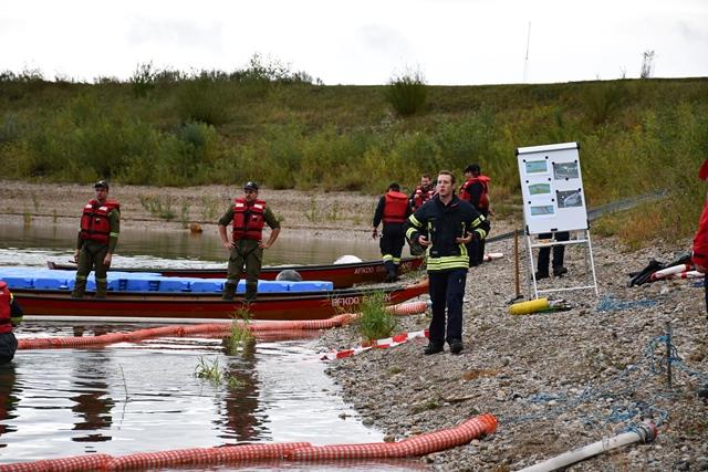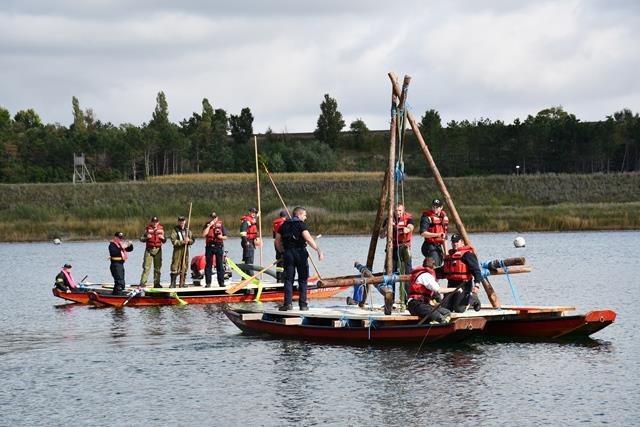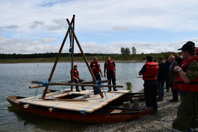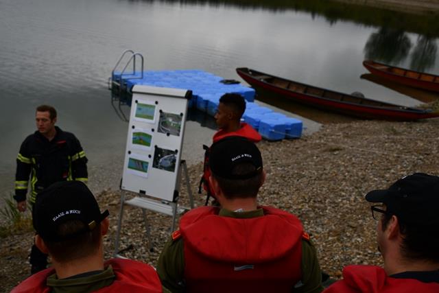 In einer weiteren Station wurde das Zillen fahren gefestigt. Hier wurde einerseits eine Person aus dem Wasser gerettet (simuliert durch einen Taucher der Feuerwehr) und andererseits Ölsperren nach einem Schadstoffaustritt mittels Zillen aufgebracht.