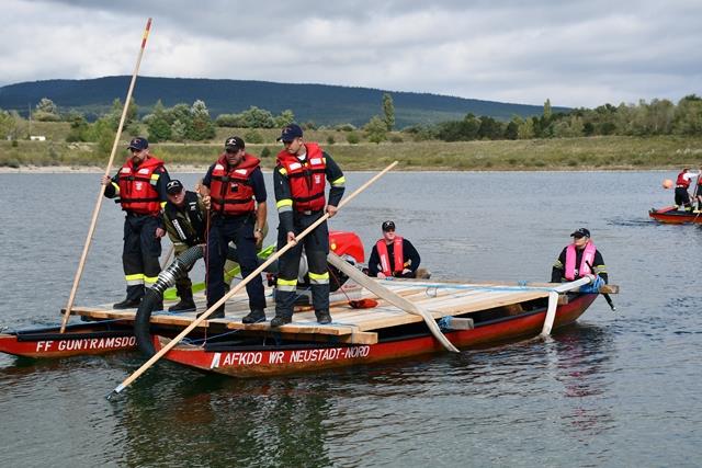 Die Übung wurde als Stationsbetrieb durchgeführt. Die Aufgaben einer Station war es, einerseits mit Zillen einen Zillenverband zu bauen und mit Hilfe einer TS zu fahren. Weiters wurde ein ca. 25 Kilo schweres Gewicht, nach dem dies von Tauchern des NÖ LFV der Tauchgruppe Süd gefunden und angeschlagen wurde, gehoben. Die gestellten Aufgaben wurden positiv erledigt.