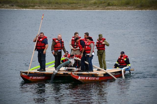 Es machten sich auch zahlreiche Ehrengäste und Feuerwehrfunktionäre selbst ein Bild von der Wasserdienstarbeit der Feuerwehren der beiden Bezirke und fanden bei der abschließenden Übungsbesprechung dankende Worte dafür.