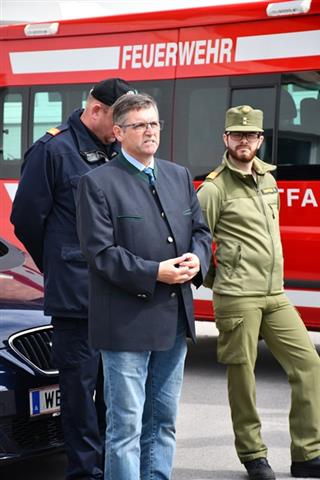 Auf dem Foto 1: Abgeordneter zum Nationalrat Ing. Franz Rennhofer, AFK BR Hans-Peter Greiner, Alois Reiterer, BSB WD Markus Thurner (Wr. Neustadt), Bundesrat Ingrid Winkler, Bezirkshauptmann Mag. Ernst Anzeletti, Gemeinderäten Michaela Binder (Bad Fischau-Brunn), Bürgermeister Reinhard Knobloch (Bad Fischau-Brunn), HBI Werner Heiden (Baden) und BFKStv. BR Alexander Wolf (Baden)