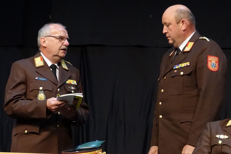 Damit wurde Karl-Heinz Greiner zum Kommandant- Stellvertreter des Bezirksfeuerwehrkommandos Wr. Neustadt gewählt und von Bezirkskommandant OBR Rudolf Freiler vereidigt.
