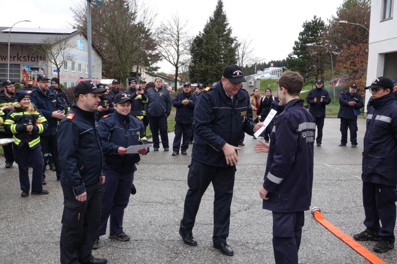 Um 17:30 war dann die Abzeichenübergabe beim Feuerwehrhaus Krumbach.