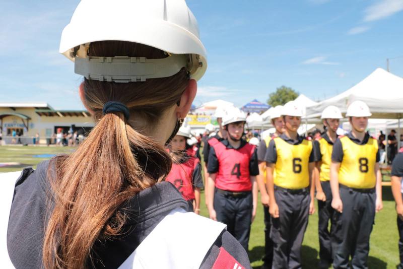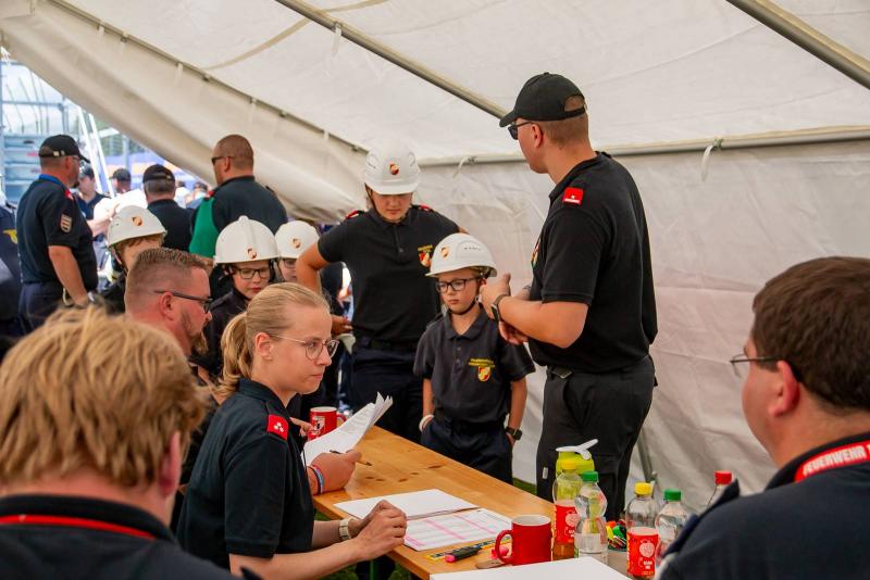 Eingeteilte Feuerwehrmitglieder beim Landesfeuerwehrjugendlager: