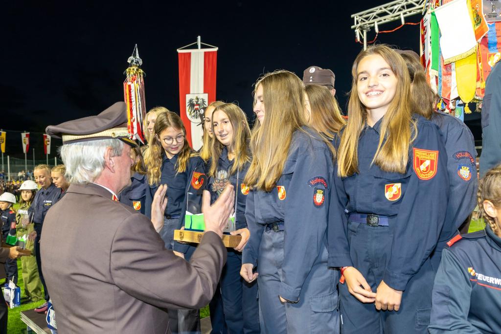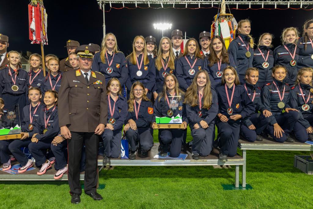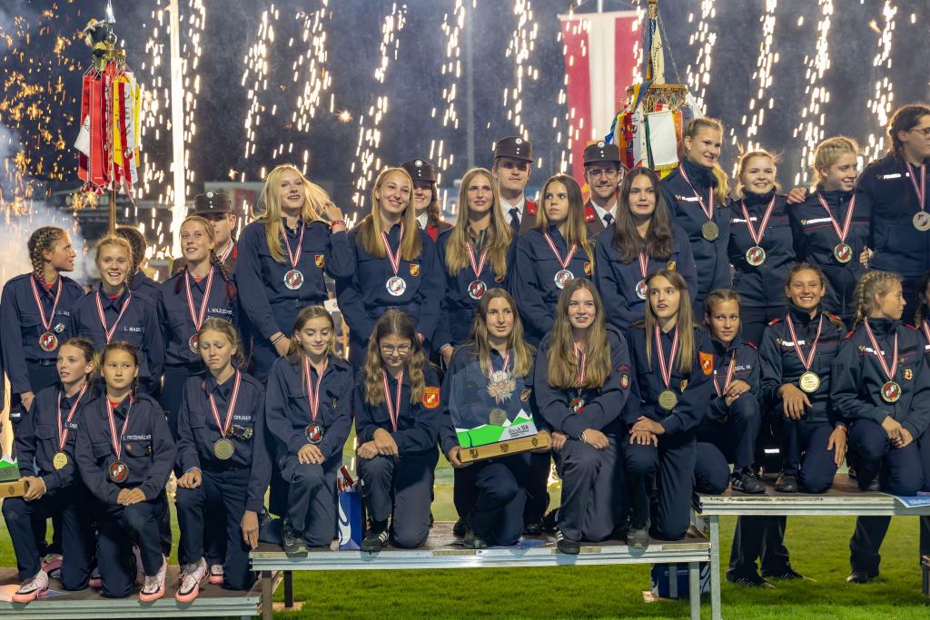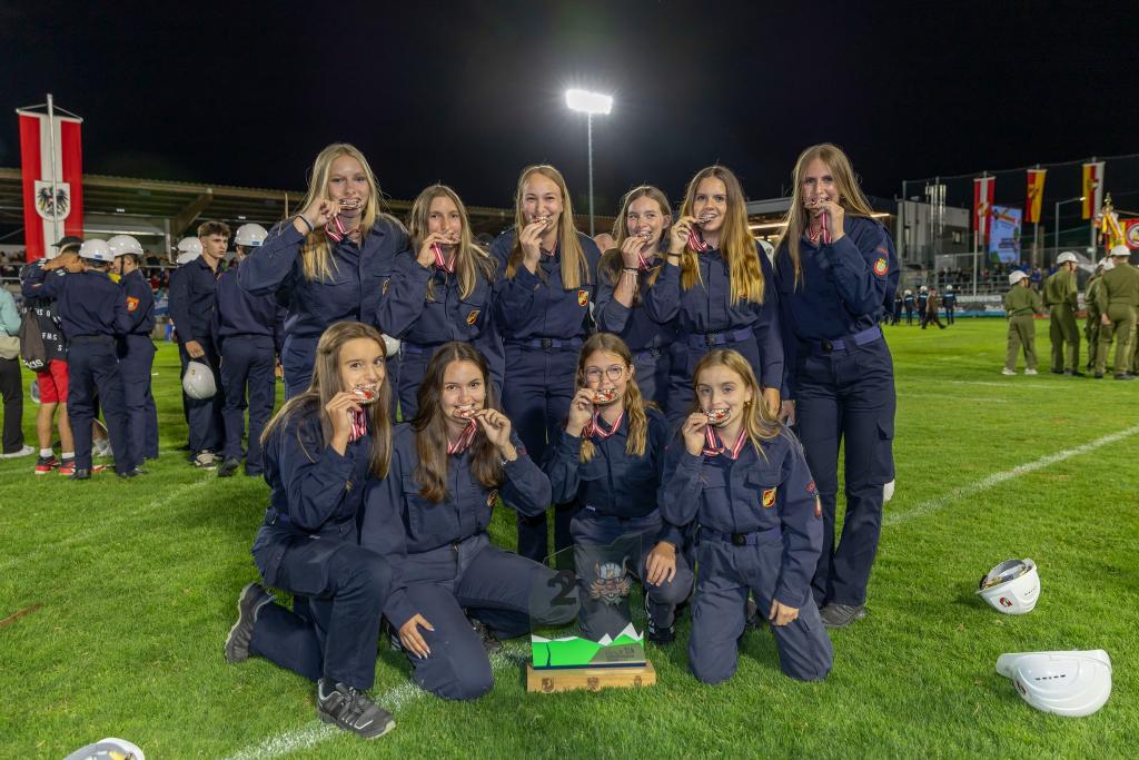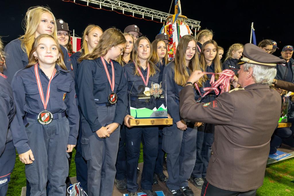 In der Mädchenwertung hat auch Oberösterreich die Nase vorn. Sieger die Feuerwehrjugendgruppe Mitteregg-Haagen/Sand (1.056,29 Punkte), gefolgt von Hollenthon in Niederösterreich (1.045,46 Punkte) und Wagrain aus Salzburg (1.044,77 Punkte).
