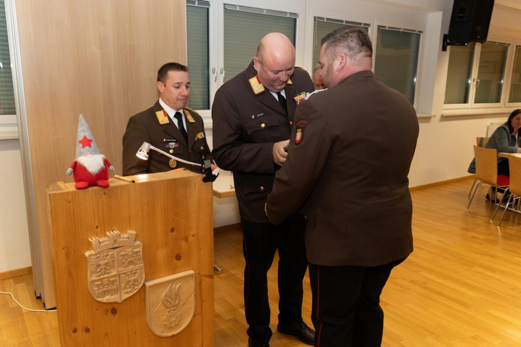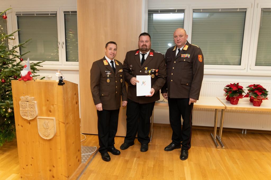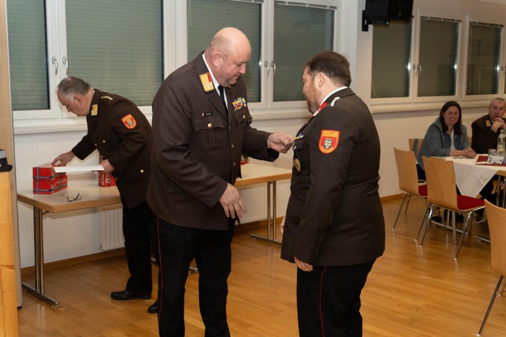 Im Rahmen dieser Sitzung wurden an BM Hannes Dietrich von der FF Felixdorf das Ausbilderverdienstabzeichen in Silber sowie an LM Michael Böhm die Katastropheneinsatzmedaille für das Hochwasserereignis 2024 verliehen.