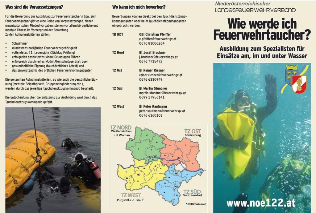 Der Sonderdienst Tauchdienst des NÖ Landesfeuerwehrverbandes sucht für den nächsten Ausbildungsturnus, welcher 2026 beginnt, motivierte Kameradinnen und Kameraden, welche sich einer der härtesten und anspruchsvollsten Ausbildung im Feuerwehrwesen stellen wollen.